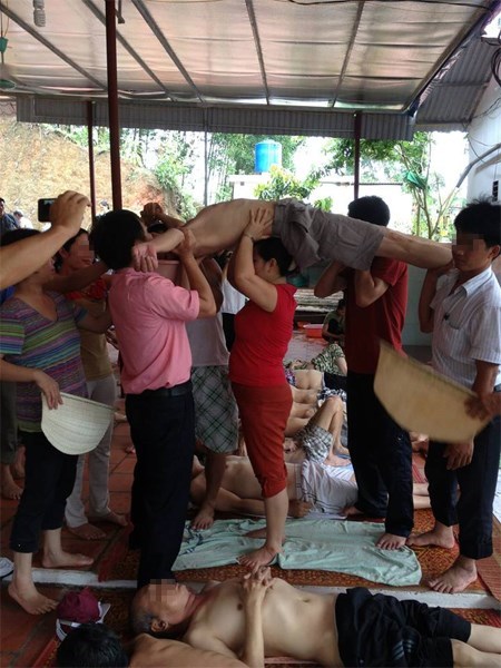 Trên thực tế, việc "tẩm quất" của bà Phú sẽ có màn giẫm lên người bệnh nhân. Có thời điểm, người bệnh nằm kín ở sân, tất cả phải cởi áo, quần kéo xuống để hở vòng 3 để bà giẫm chân lên.
